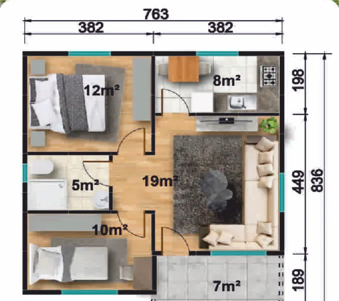 106 – 61m² Tek Katlı Prefabrik Ev