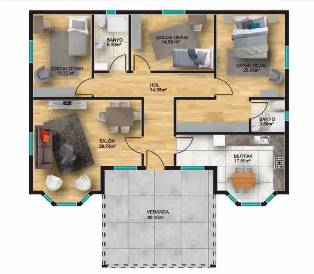 Dış Duvarlar10 cmDış KapıÇelik Kapı