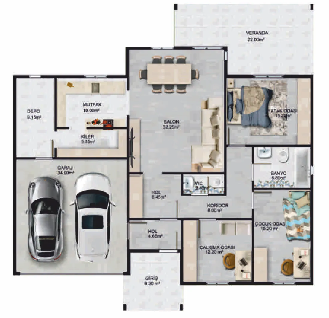 Prefabrik Ev Veya Çelik Ev, Tek Katlı, İki Katlı Villa Tipi, 3 Katlı Triplex Olarak Tasarlanabilen önceden fabrika ortamında üretilen ve daha sonra inşaat alanına taşınarak montaj ve kurulumunun yapıldığı konutlardır. İşte Prefabrik ve Çelik evlerin bazı özellikleri: Hızlı İnşa Süreci: Prefabrik ve Çelik, fabrika ortamında parça parça üretildiği için inşaat süreci hızlıdır. Bu, kısa sürede konut sahibine teslim edilmesini sağlar. Ekonomiklik: Prefabrik ve Çelik, seri üretim avantajından faydalanarak daha ekonomik bir seçenek sunar. Daha düşük maliyetlerle üretildikleri için daha uygun fiyatlarla satın alınabilirler. Taşınabilirlik: Prefabrik ve Çelik, demonte edilebilir yapıları sayesinde taşınabilirlik avantajı sağlar. İhtiyaç halinde başka bir yere taşınabilir veya yeniden monte edilebilirler. Çevre Dostu: Prefabrik ve Çelik evler, fabrika ortamında kontrollü bir şekilde üretildiği için atık miktarı düşüktür. Ayrıca, enerji verimliliği sağlamak amacıyla çeşitli izolasyon ve yenilenebilir enerji sistemleri entegre edilebilir. Tasarım Esnekliği: Prefabrik ve Çelik evler, farklı tasarım seçenekleri sunar. İhtiyaçlara ve zevklere uygun olarak özelleştirilebilirler. Farklı boyutlarda, kat planlarında ve malzemelerde çeşitlilik sağlanabilir. Dayanıklılık: Prefabrik ve Çelik evler, genellikle dayanıklı malzemelerden üretilir. Bu malzemeler, yapıyı güçlendirir ve uzun ömürlü olmasını sağlar. Teknolojik Donanım: Prefabrik ve Çelik evlerde, modern konforu sağlamak amacıyla teknolojik donanımlar kullanılabilir. Elektrik, ısıtma-soğutma ve iletişim sistemleri gibi teknolojik bileşenler entegre edilebilir. Enerji Verimliliği: Prefabrik evler, yüksek izolasyon özellikleri sayesinde enerji tasarrufu sağlar. İyi yalıtılmış duvarlar, çatılar ve pencereler, enerji tüketimini azaltır ve sürdürülebilir bir yaşam alanı sunar. Projede Özerşah Performansını En Güzel Şekilde Deneyimleyebilirsiniz.